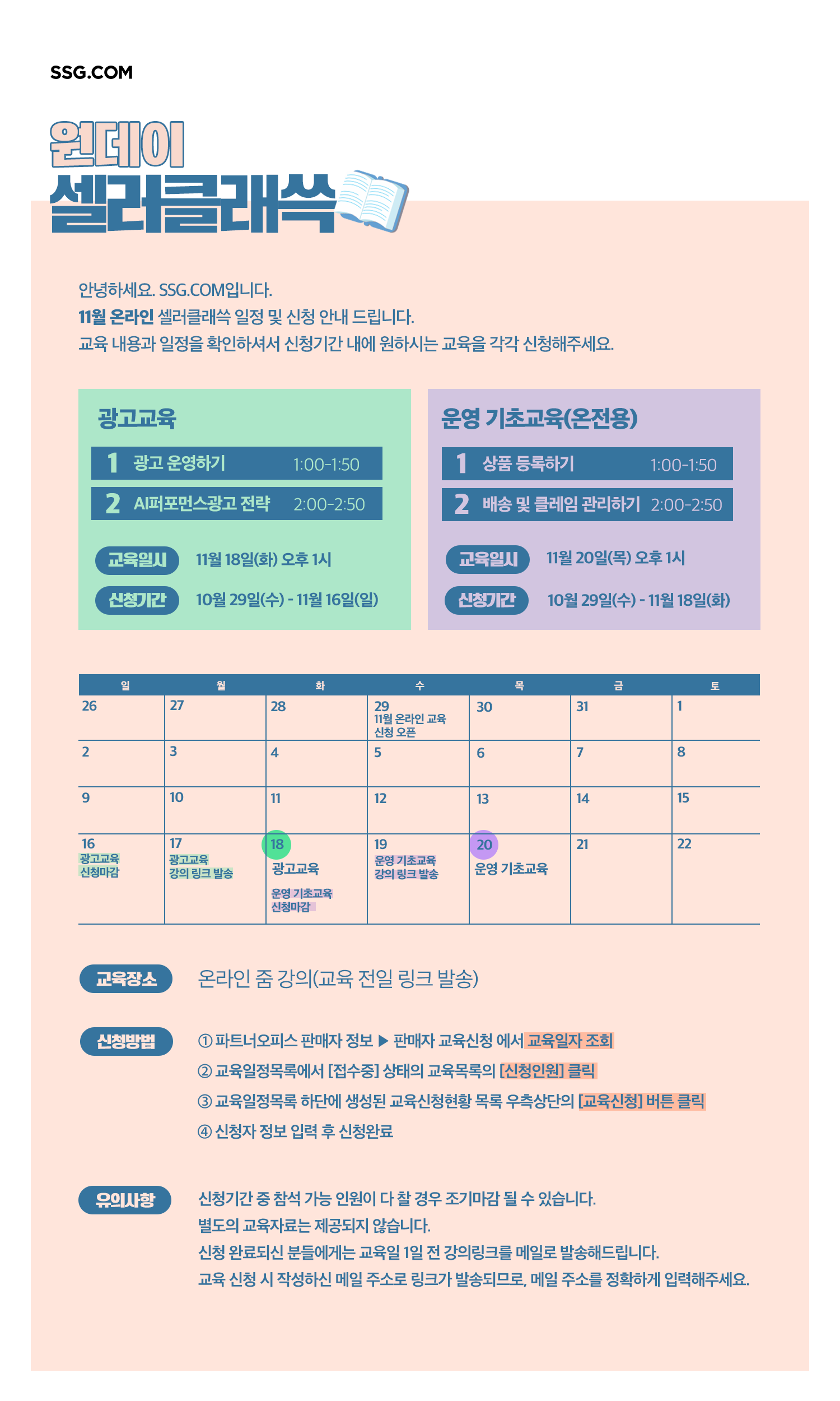 [ 이마트/SSG ] 11월 온라인 셀러교육 신청 안내(광고 운영 / 상품등록 및 배송관리)