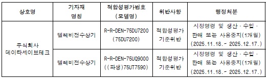 ■ 전파법 제58조의4 규정에 따라 행정처분(시정명령 및 판매중지) 결과를 알려드리오니 행정처분 기간 내에는 부적합한 불량 제품이 유통되지 않도록 협조 부탁드립니다.