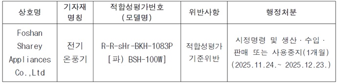■ 전파법 제58조의4 규정에 따라 행정처분(시정명령 및 판매중지) 결과를 알려드리오니 행정처분 기간 내에는 부적합한 불량 제품이 유통되지 않도록 협조 부탁드립니다.