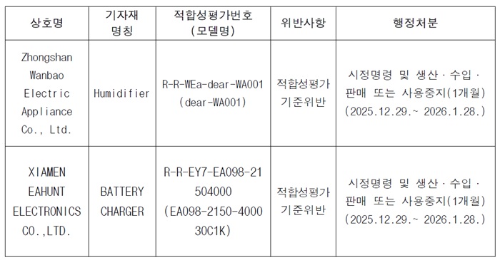 ■ 전파법 제58조의4 규정에 따라 행정처분(시정명령 및 판매중지) 결과를 알려드리오니 행정처분 기간 내에는 부적합한 불량 제품이 유통되지 않도록 협조 부탁드립니다.