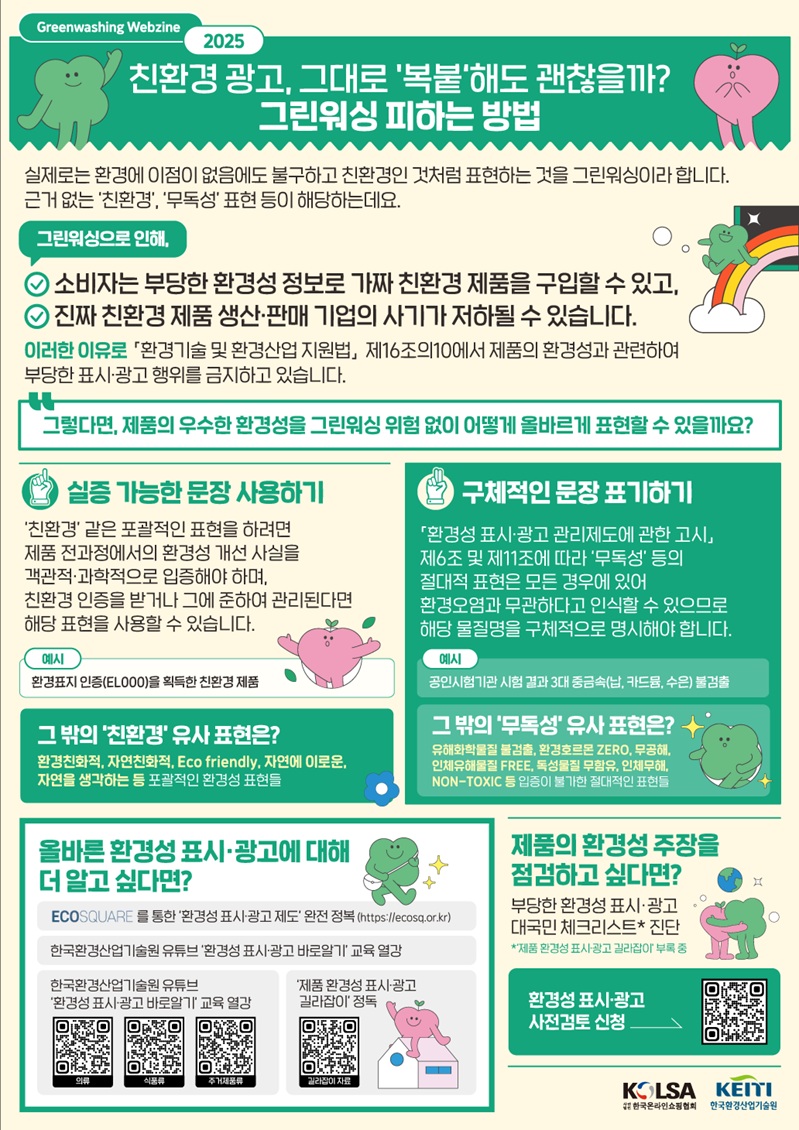 한국환경산업기술원(녹색전환실로)부터 그린워싱 포스터 홍보를 요청받아 안내 드립니다.