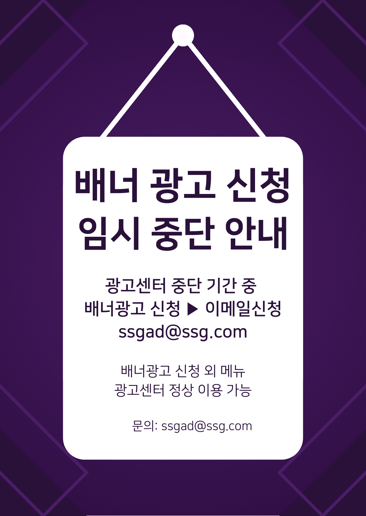 중단 기간 중, 배너광고 신청 및 관련 문의는 ssgad@ssg.com 이메일 접수 및 문의를 통해 진행되며