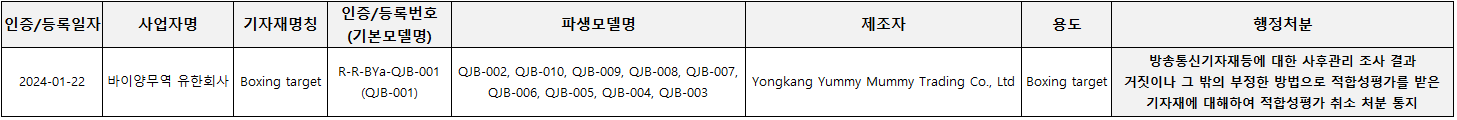 행정처분 받은 부적합한 불량 제품이 유통되지 않도록 적극적인 협조 부탁드립니다.