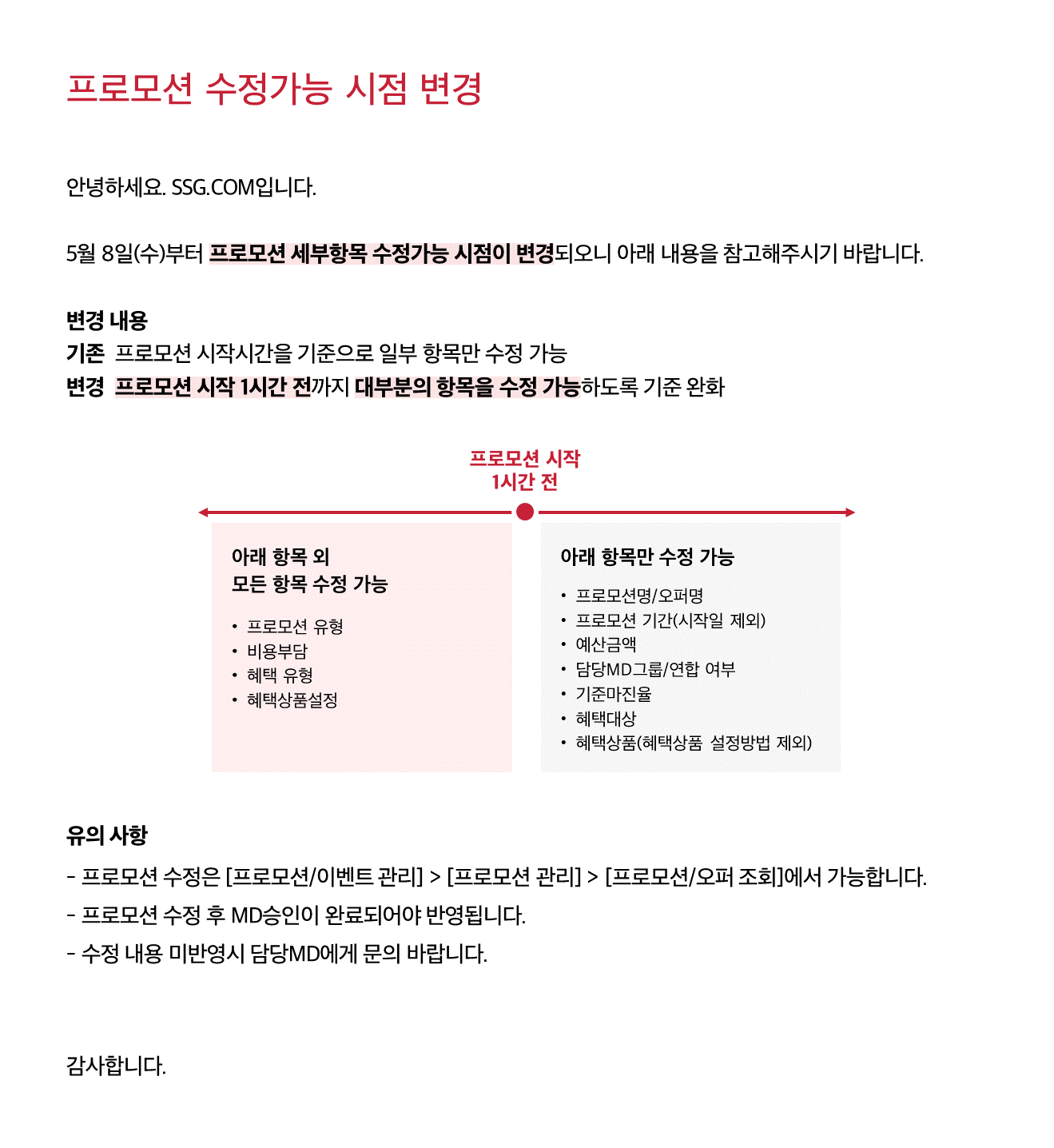 [ 이마트/SSG ] 프로모션 수정 가능 시점 변경 안내