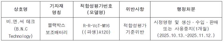 - 전파법 제58조의4 규정에 따라 행정처분(시정명령 및 판매중지) 결과를 알려드리오니 행정처분 기간 내에는 부적합한 불량 제품이 유통되지 않도록 협조 부탁드립니다.