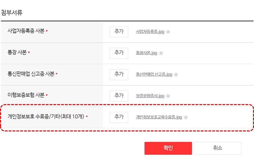 2. 신규 개인정보수료증은 파트너센터 내 첨부 바랍니다.