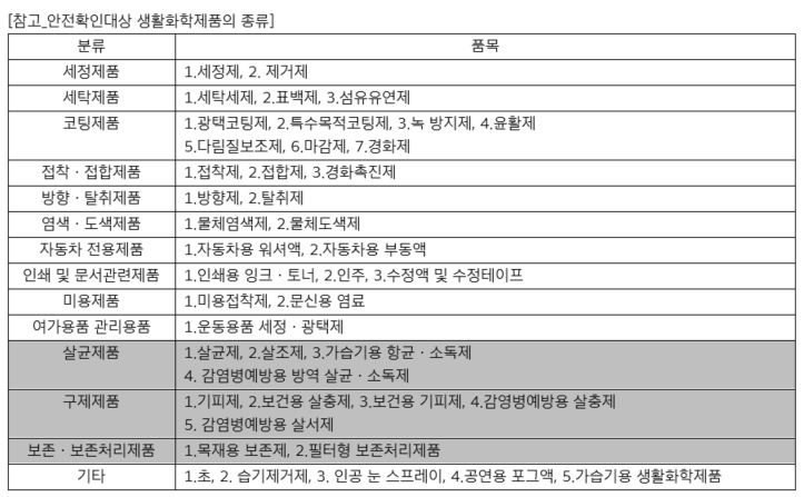 ※ 안전확인대상 생활화학제품 및 살생물제품에 사용해서는 안 되는 문구