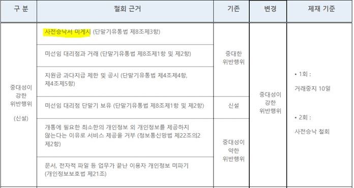 판매점 사전승낙서를 상품 상세 페이지에 게시해야 합니다.