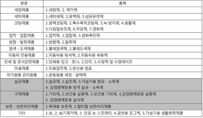 - 생활화학제품 또는 살생물제품 유형으로 등록해야할 상품을 타 유형군으로 등록(기타재화, 화장품 등)