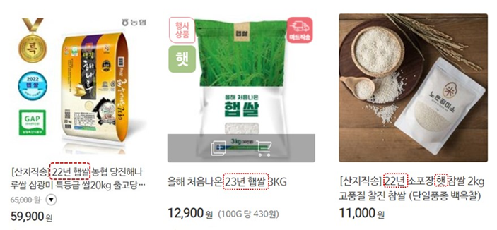 (이 경우 상세페이지나 쌀 이미지에 생산연도를 알 수 있도록 표기 요청)
