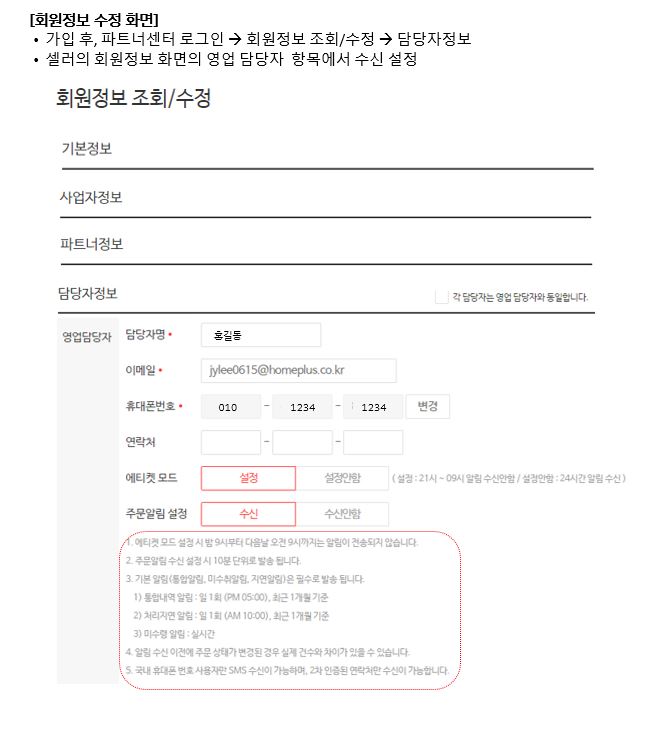 2023년 11월 15일, 홈플러스 파트너센터에 입점 셀러 대상으로 SMS 알림 서비스를 시행합니다.