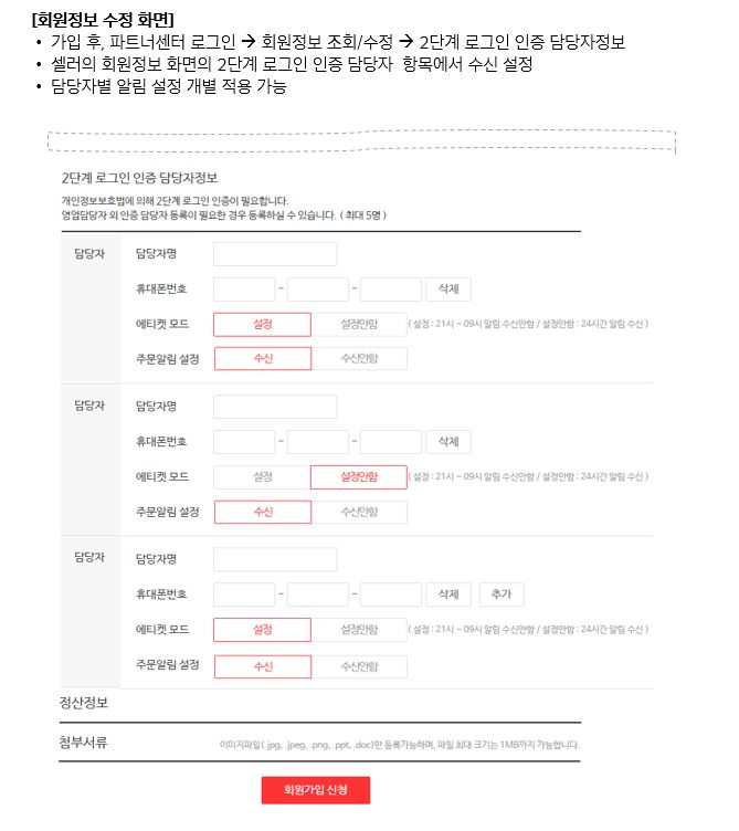 위 매뉴얼 참고하시어 [회원정보수정] 화면에서 수신설정(에티켓모드설정 포함)을 부탁드리며,