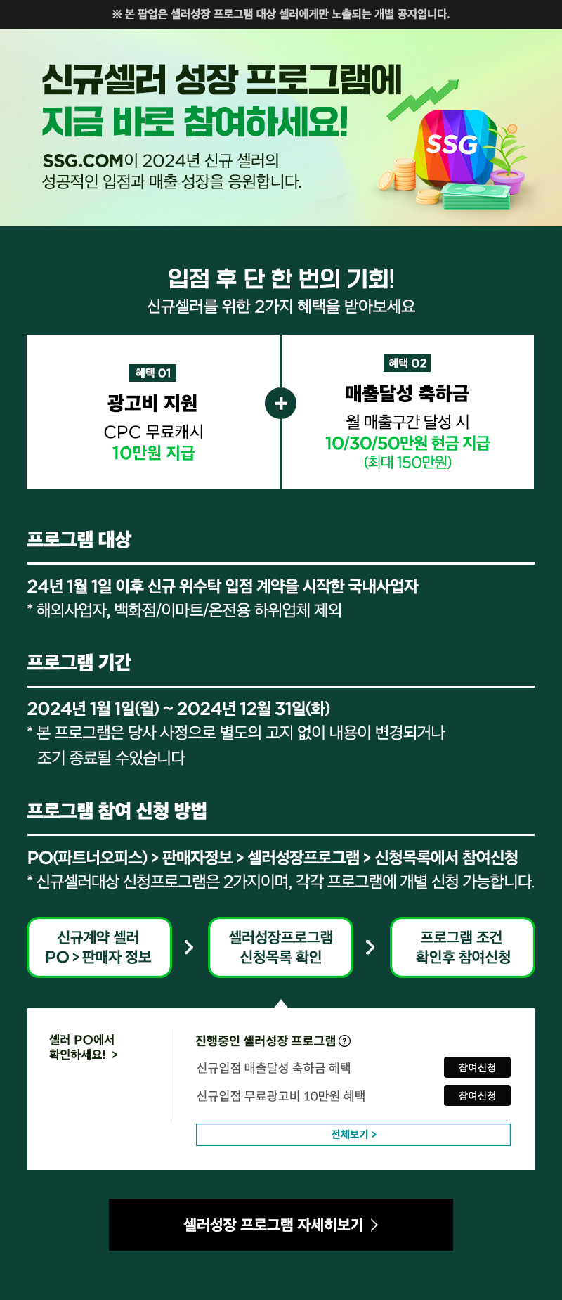 [ 이마트/SSG ] [개별안내] 신규셀러 성장프로그램 축하금 혜택 안내