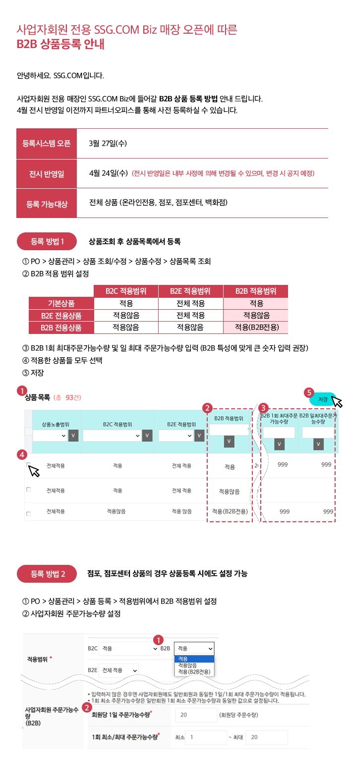 [ 이마트/SSG ] 사업자회원 전용 매장 오픈에 따른 B2B 상품등록 안내