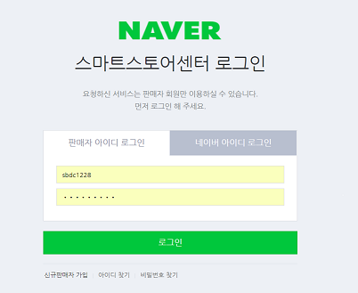 - 판매자, 네이버 등록한 화면으로 로그인