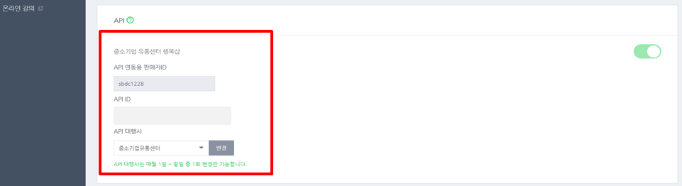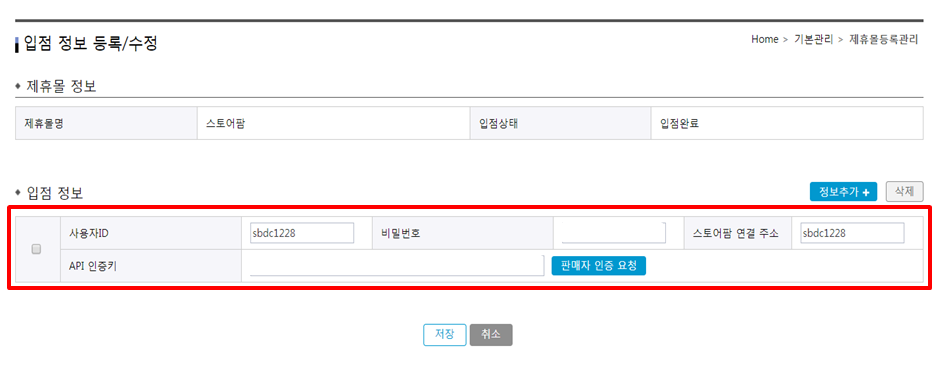 - 판매자 ID, 인증키 , 대행사 선택 저장