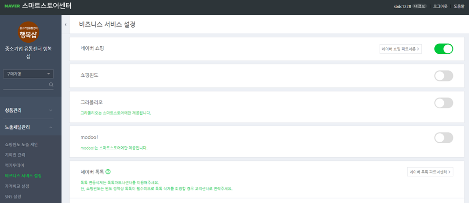 - 노출채널관리 > 비즈니스 서비스 설정 화면 이동