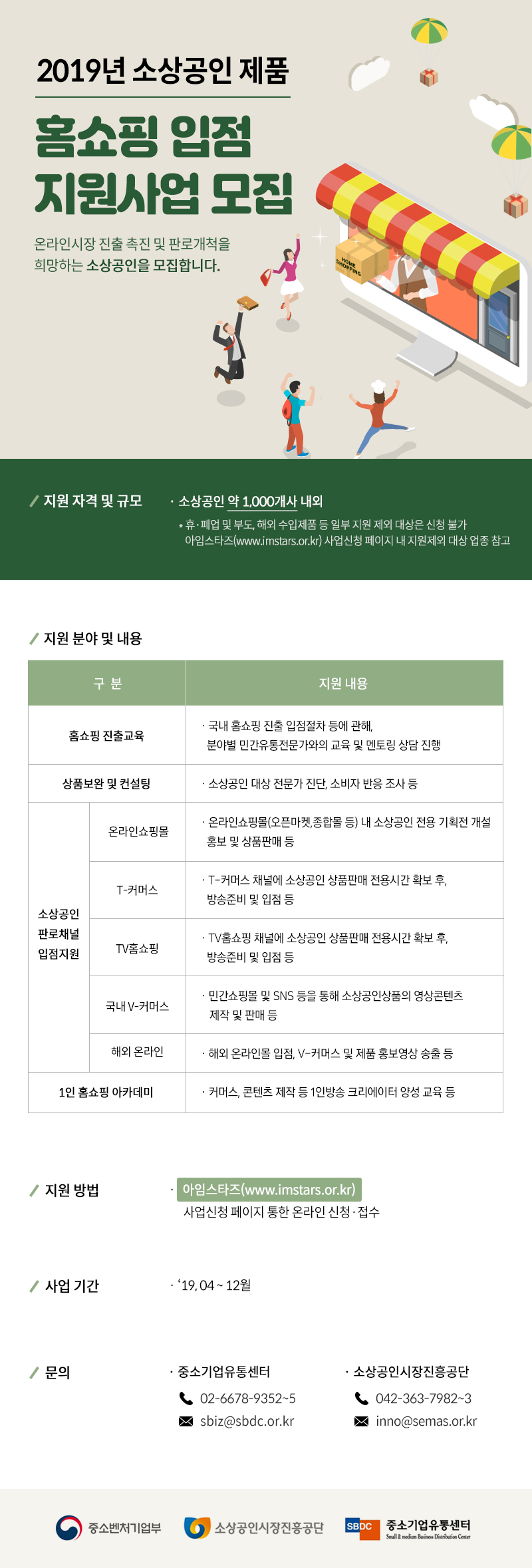 소상공인제품 홈쇼핑 입점 지원사업 모집